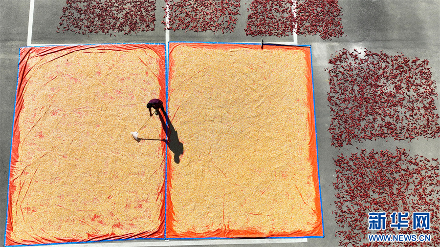 近日,貴州省黔東南苗族侗族自治州岑鞏縣凱本鎮3500畝辣椒和2000余畝玉米喜獲豐收,當地村民搶抓晴好天氣曬玉米、辣椒,確保顆粒歸倉。