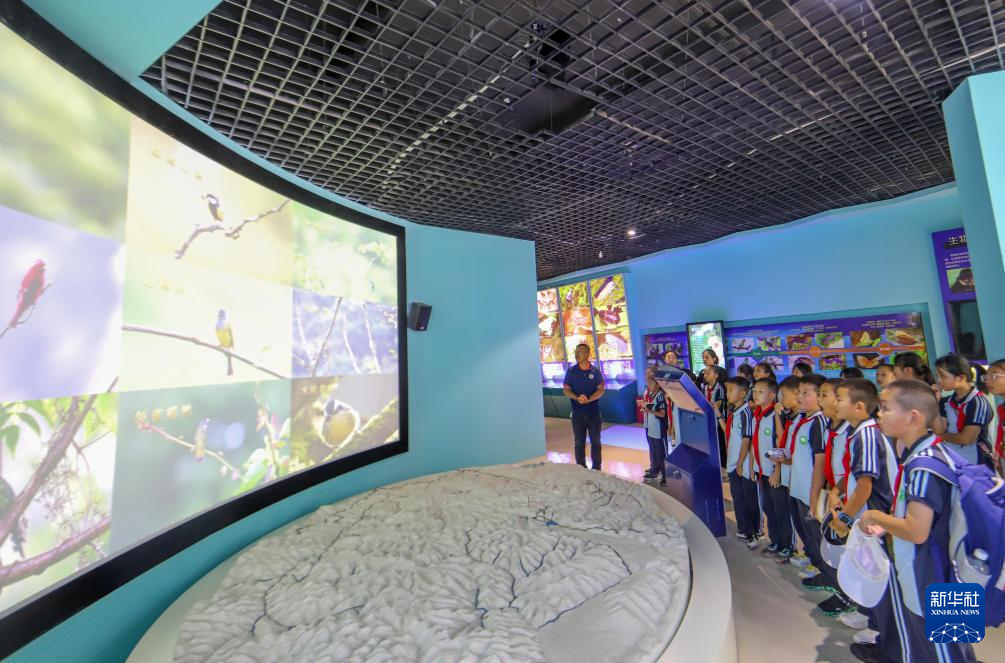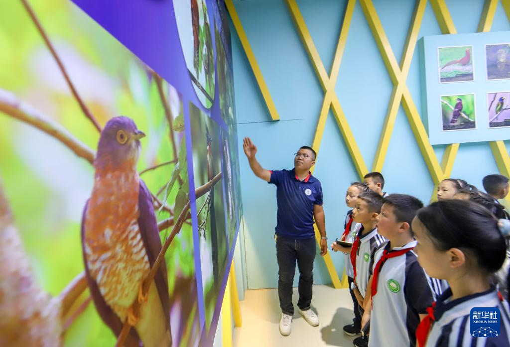 9月6日,學生在貴州寬闊水國家級自然保護區宣教中心學習鳥類科普知識。新華社發(袁福洪攝)