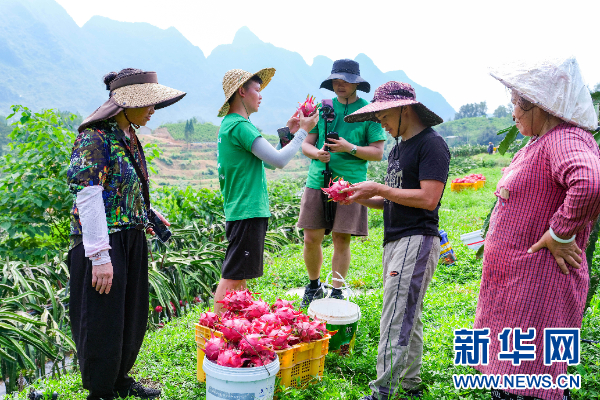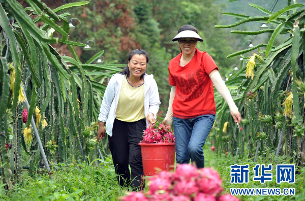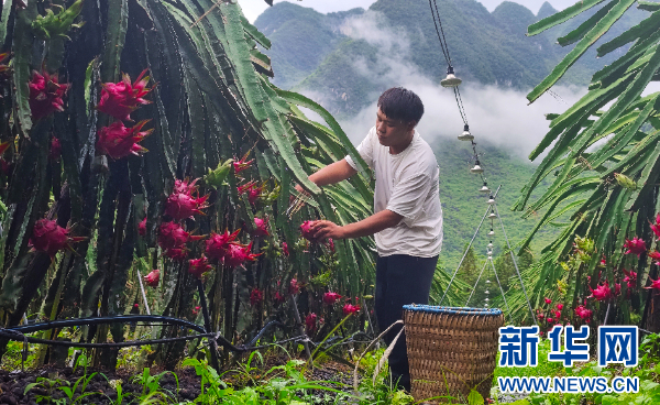 羅甸縣果農在采收火龍果。(羅甸縣融媒體中心供圖)