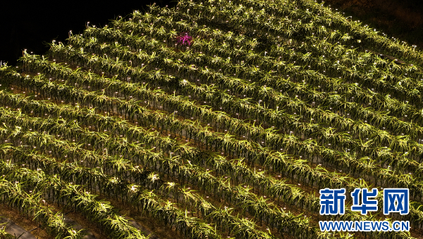 蜜寶火龍果種植基地通過LED燈補光催花。新華網發(劉佳鑫 攝)