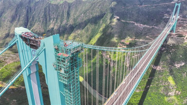 9月12日,左超文和伙伴們參與了蕩繩的首次調試。繩索一松,他在峽谷間自由落體、蕩來蕩去,俯瞰群山家園?!叭绻皇墙ㄔO大橋,我可能一輩子都不會去體驗蹦極、蕩繩這些極限項目?!弊蟪氖秦懾S縣平街鄉土生土長的小伙,和十來個老鄉被聘為超極限旅游公司員工?!皼]想到我們的古村莊有了這么國際化的視角,它一定會伴著世界第一高橋被全世界認識!”