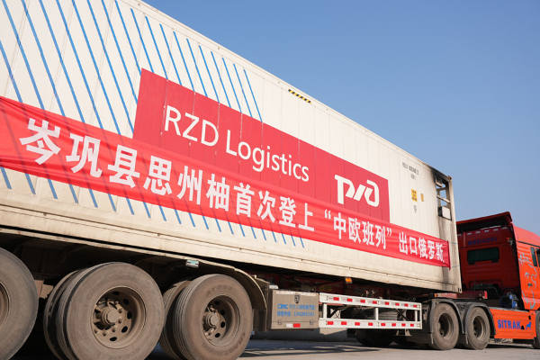 岑鞏思州柚搭乘“中歐班列”出口俄羅斯(資料圖)。(蔣志敏 攝)