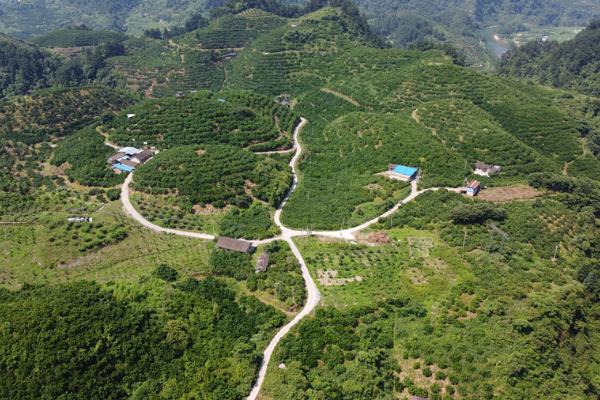 航拍岑鞏縣注溪鎮楠木坳思州柚種植基地。(陳昆 攝)