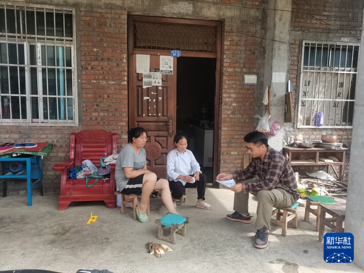 簡嘎鄉岜懷村黨支部書記羅周元(右一)到村民家中普及防溺水知識。(受訪者供圖)