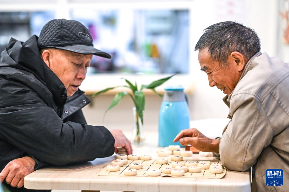 兩位老人在貴陽市南明區紅巖東郡社區誠善助老公益互助服務點下棋(10月24日攝)。